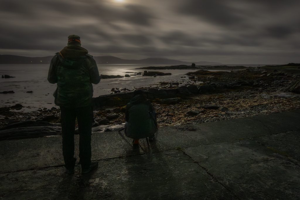 Eine kleine Nachtwanderung zum Strand, Langzeitbelichtung unser Vorhaben. Ebbe, das Wasser etwas weiter weg vom Strand. Viele Steine und unsagbar viel Tang am Ufer. Nicht grade ungefährlich da alles furchtbar Glitschig ist. Sind wir Vorsichtig, die Reise ist erst sehr wenige Tage alt.